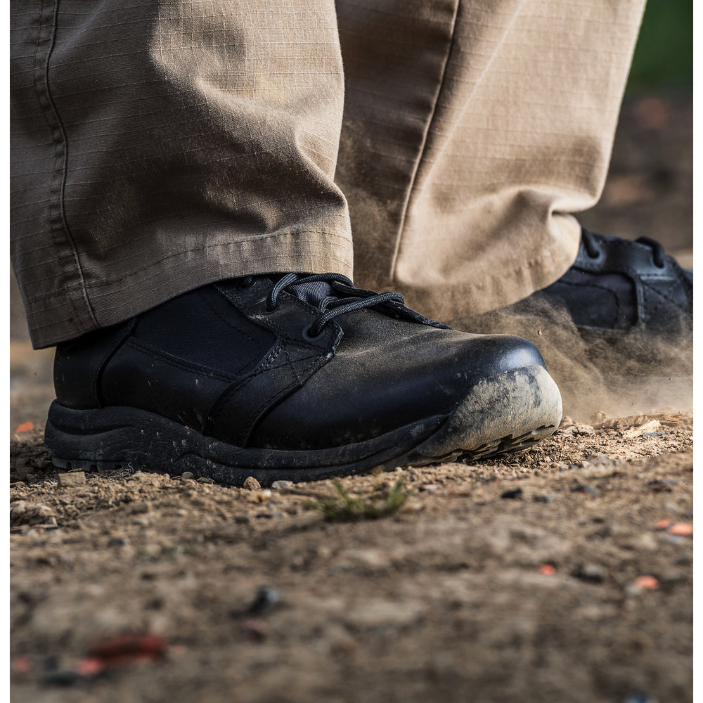 - The polishable synthetic leather on the toe area meets uniform requirements.